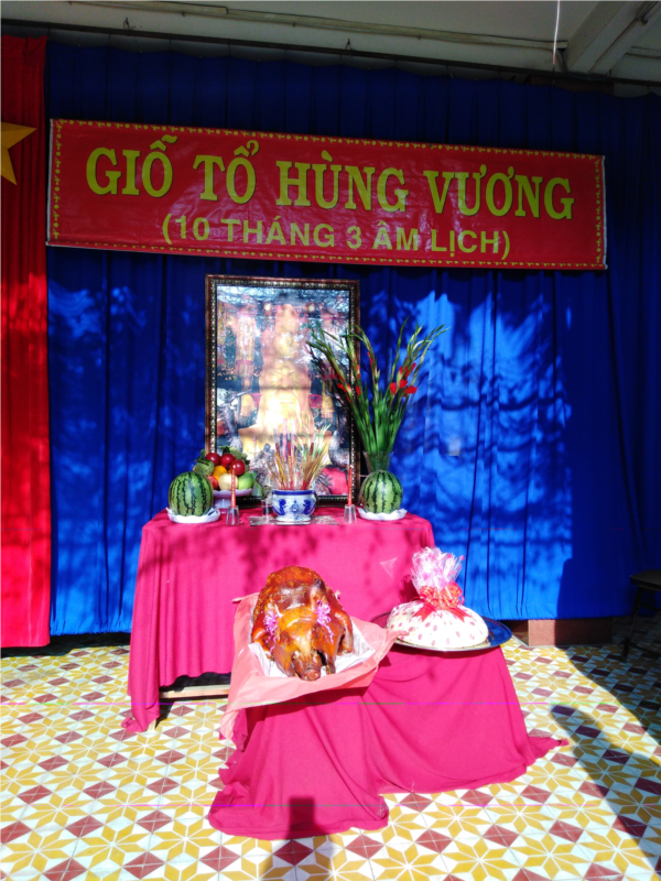 rToàn bộ giáo viên, công nhân viên lên thắp hương cho các vị vua Hùng.
